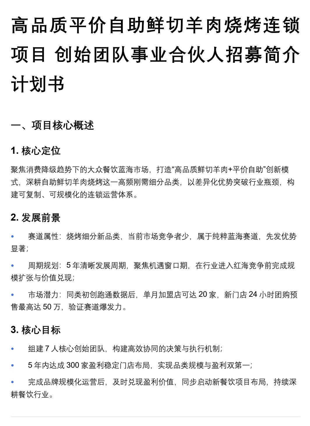 自我介绍:2015至今,餐饮专攻!擅长统筹和寻找商机,会融资。 投资经历/偏好:尚无 我可以担任CEO: 我招募餐饮初创团队事业合伙人7名,每人需求能力不同。我有10年餐饮和培训从业经验,和投资,个人非资本。以及开设自营连锁19家店的经验和推广了100多家的加盟店。有好项目的可以发给我,但是这段时间在2026年二月28日之前,我主要是招募这个餐饮团队。