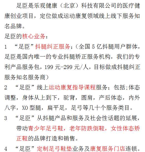 足臣是运动康复领域服务创业项目,国内专业抖腿矫正服务商,依托北京华夏医博医学研究院的科研技术市场化运营,找有丰富经验项目运营伙伴。