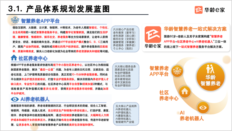公司核心创始团队成员来自腾讯、字节、阿里等大厂骨干,围绕60岁+老龄人及其子女家属构建“智慧养老APP平台”、“社区养老中心”、“AI养老机器人”三位一体的产品体系业务,打造全球行业领导者百亿级项目,目前启动天使轮融资,相关投资人及机构感兴趣可随时与我联系。