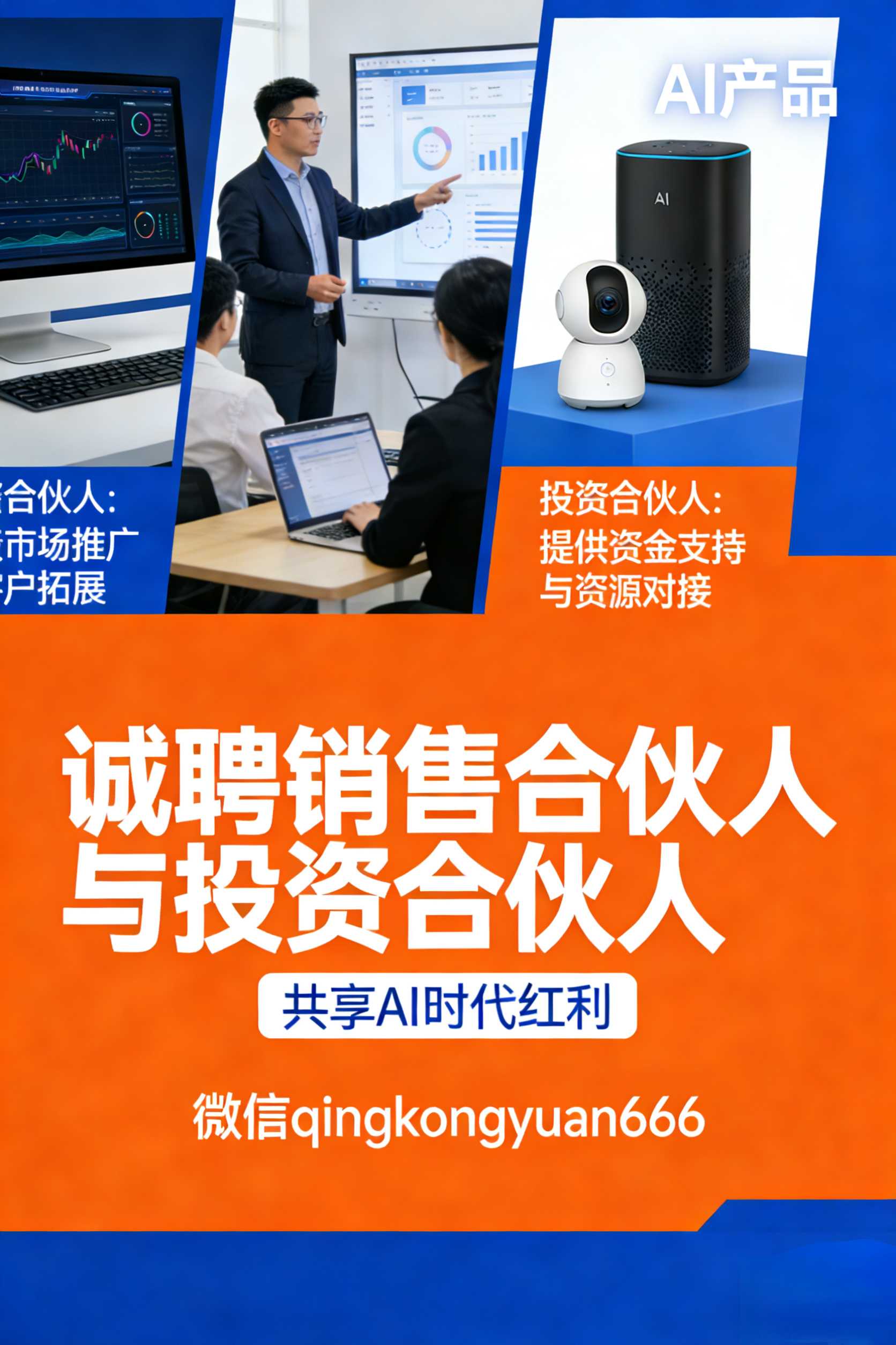 大家好!你有难题,我用Ai帮你解决,限时免费。 免费体验Ai工具解决问题,Ai快速获客,Ai快速省成本,Ai营销,Ai商业战略,Ai降本增效…帮你省时钱提效。只有免费体验了,才知道好不好,对不对? 1. 我有各类AI实用工具:企业AI获客工具、AI营销工具、AI降本工具,也有适合宝妈、职场人使用的AI工具,简单好用、见效快。 2. 我可做AI商品图、AI海报、AI LOGO等设计,出图快、不用排队,效率远超传统设计。 3. 我有零基础AI实操课,只需点一点就能出结果,我10岁女儿都能做出AI小程序,没文化也能学会。 现诚招: 销售合伙人:你负责销售找客户,我负责产品,利润五五分成。 同时寻找投资合伙人:项目市场大、人群广、模式轻、回本快、收益高,投资回报可观,想合作的欢迎留言。 想免费体验的,加微信qingkongyuan666